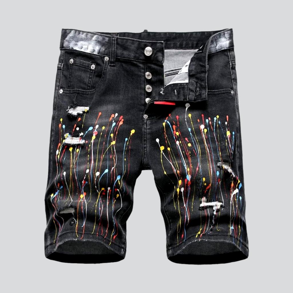 Elevate your summer wardrobe with our 2023 Summer Collection of millennium-vibe printed ripped men's denim shorts! Expertly crafted using luxe denim. these slim mid-waist shorts feature a signature buttons closure for a timelessly chic look. Dare to be bold with its audacious raw hem. and experience unparalleled comfort and style with every wear.