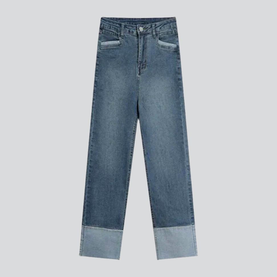 Capture the essence of summer couture with our 2023 Spring-Summer Collection's patched hem straight women's jeans. These elevated-waisted jeans feature a unique patchwork design that is sure to turn heads. Complete with an easy-to-close zipper and button closure. these jeans will make you look and feel your best!