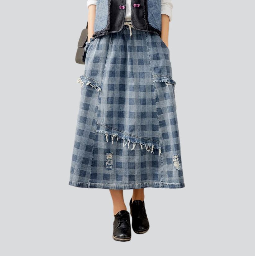 Introducing the 2023 Spring-Summer Collection pieced-together a-line denim skirt ââ‚?a laid-back style staple that brings together laid-back attitude and sophisticated splendor!