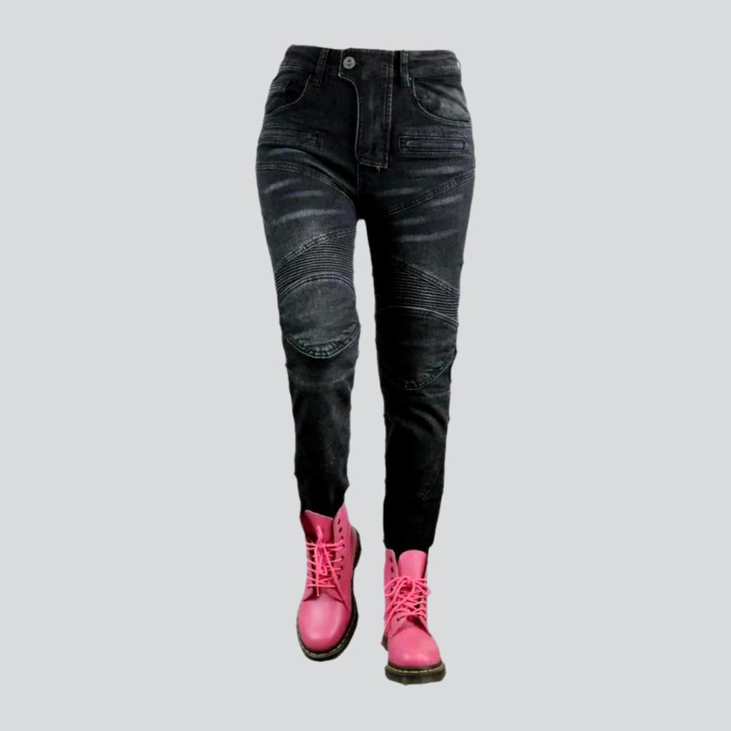 Introducing our iconic 2023 Autumn Collection's Protective Biker Jeans for Women ââ‚?the ultimate expression of laid-back flair and protection!