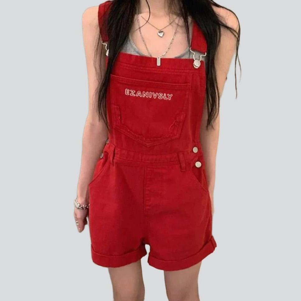 Take a step back into the Y2K era while still looking forward with this sanded y2k Red Denim Romper from our 2023 Spring-Summer Collection. With its vibrant color. loose fit. and stretchy fabric. this jumpsuit is a stylish tribute to the millenniun's legendary fashion sense!