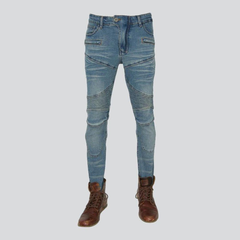 Make a statement this summer with our 2023 Spring Collection skinny men's biker jeans. designed for those who love fashion as an art. Crafted from luxe denim material with a mid-waist fit. these jeans will have you feeling comfortable and looking impeccable with their zipper and button closure. Boasting a biker style and stonewashed look. they will have you turning heads wherever you go.