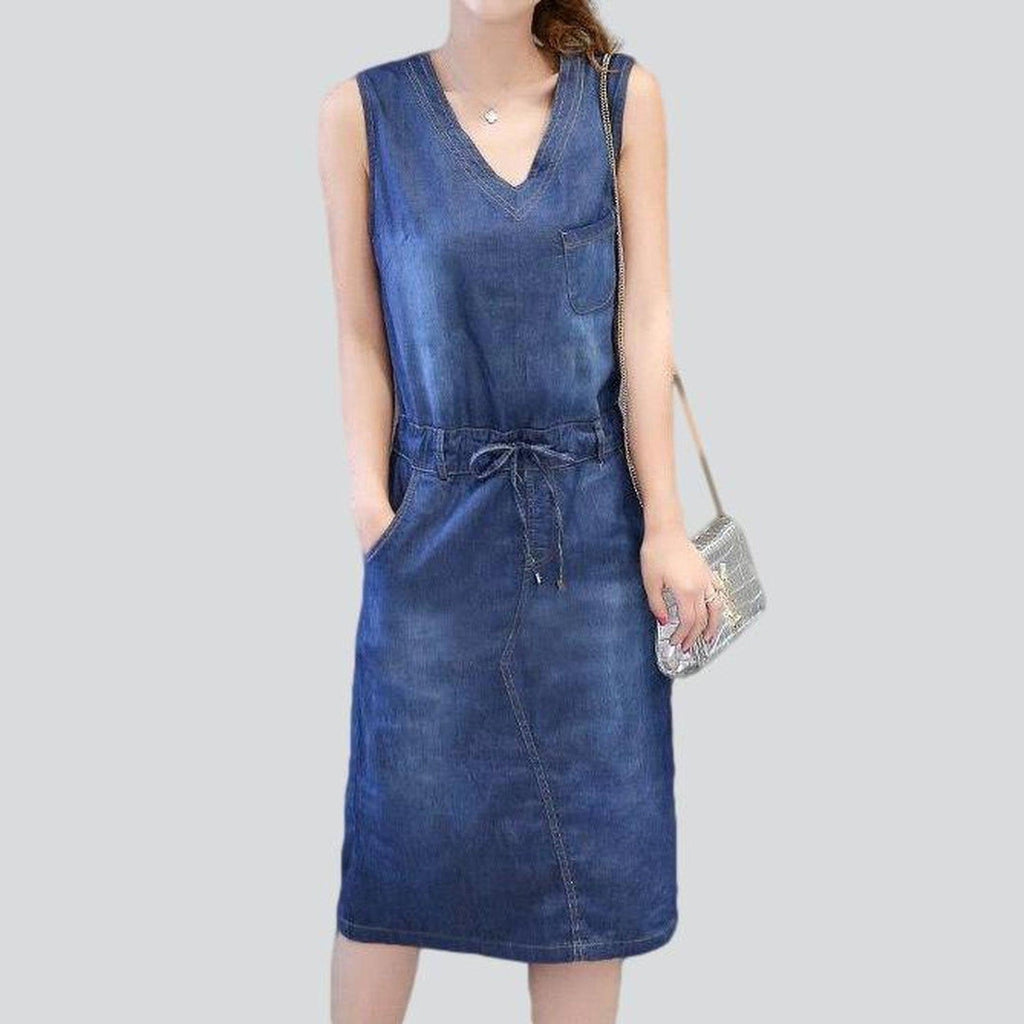 Be ready to create a stir this summer! Whether you're headed to a music festival or a laid-back day out with friends. this Sleeveless Knee-Length Jeans Dress is sure to make a statement. Pair it with combat boots or heels. graphic tees. or delicate blouses; its versatility. chicness. and undeniable grace will make you the star of the show.