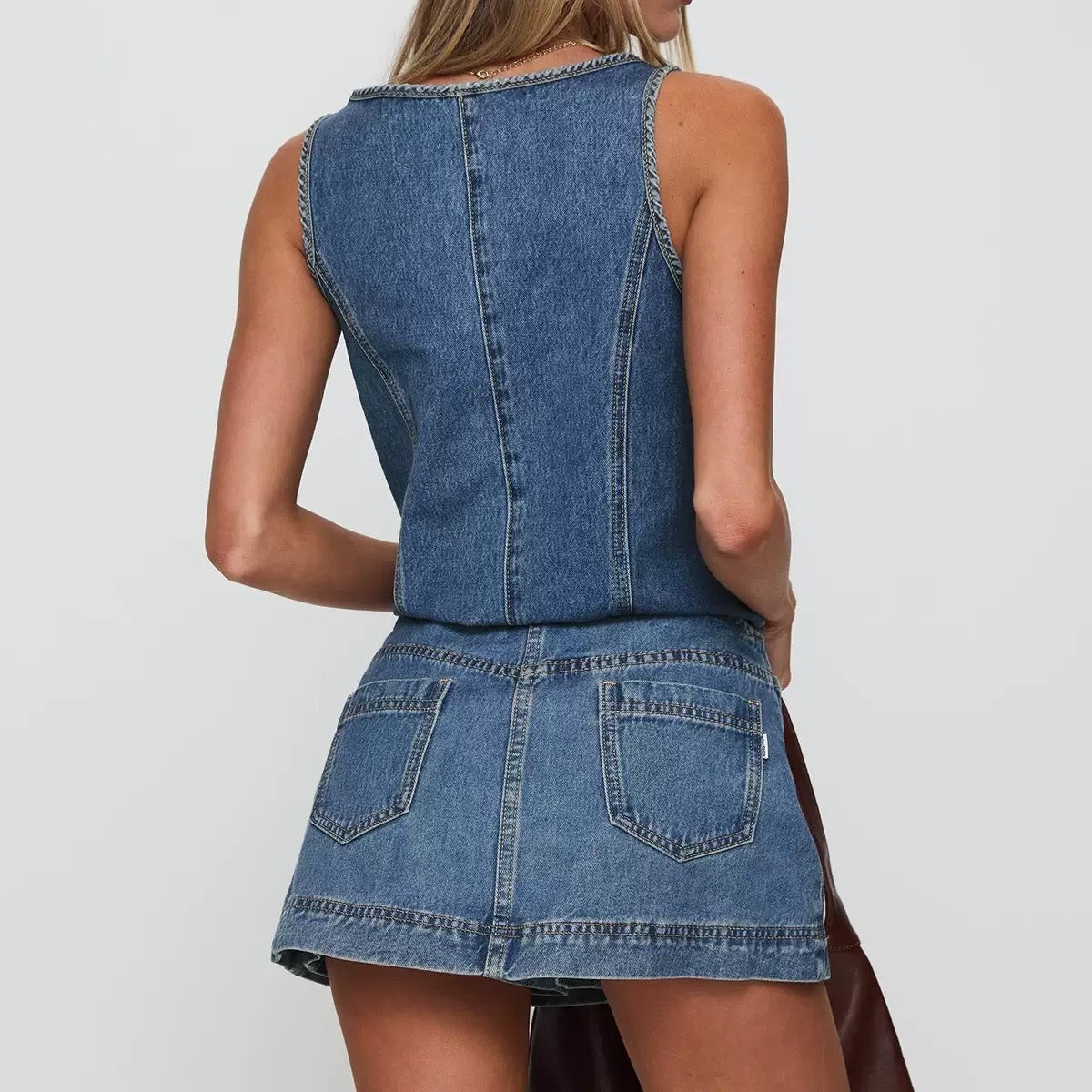 Sleeveless Vest Denim Skirt Set