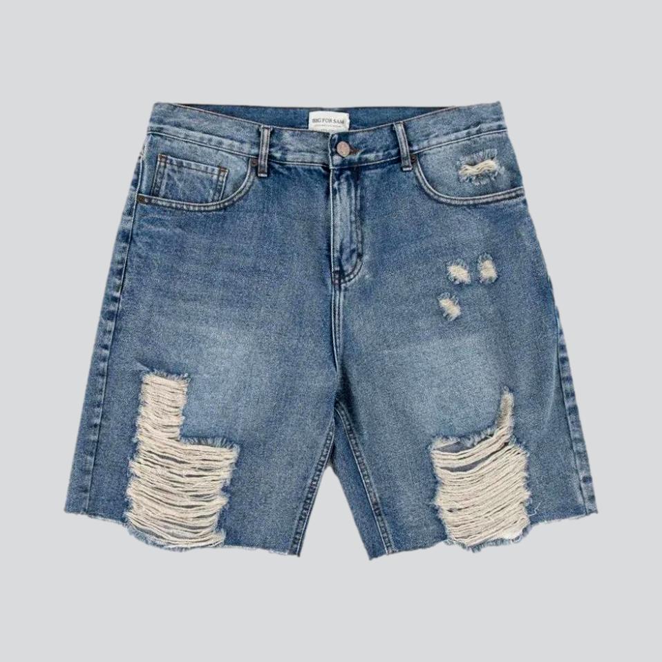 Stay ahead of the curve with our 2023 Summer Collection's punk-inspired Straight Damaged Jeans Shorts for ladies—a high-waisted. zipper & button closure masterpiece of aged chic and trendy style!