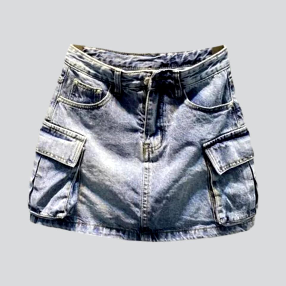 Add a touch of grunge-inspired sophistication to your wardrobe with our stylish 2023 Summer Collection cargo mini denim skort! Featuring a flattering mid-waist style. this dark wash distressed denim skort is the perfect blend of contemporary fashion and nostalgic vibes.