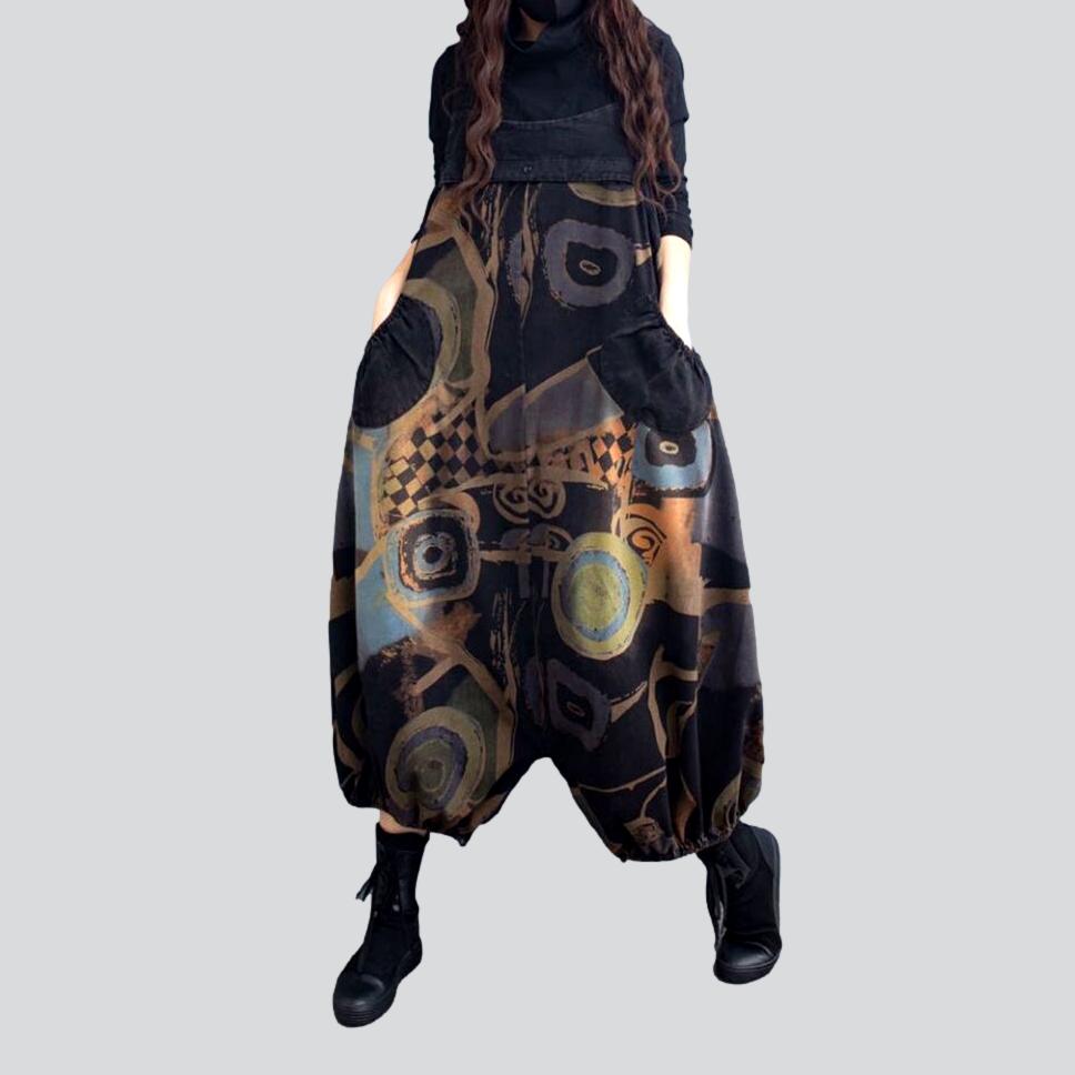 Executing laid-back-style from 2023 Autumn Collection to perfection introducing the couture print black denim dungaree! Crafted with premium quality denim. these baggy shorts exude a classic grunge-inspired look with an air of contemporary sophistication. With their distinctive distressed pattern. resilient zipper. stylish button. and slim fit. you'll be sure to turn heads with this statement piece.