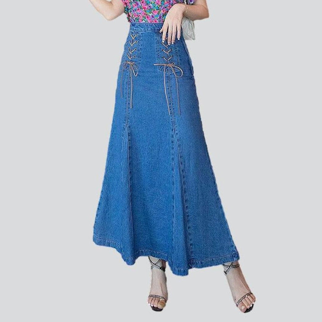 Be ready to turn heads with our 2023 Spring Collection Bell Denim Skirt with Laces. This street style skirt captures the perfect balance between classic and modern. with a quintessential high-waist fit and a medium wash that adds a charming. contemporary twist.