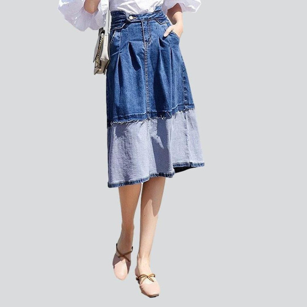 Take your look to the next level with this patchwork denim skirt. a statement piece that will never go out of style. Its vibrant colors and textures make it perfect for any occasion. from a casual street-style look to a chic evening ensemble.