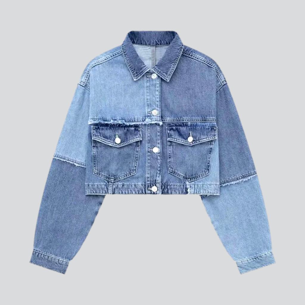Introducing the two-tone patchwork denim jacket from the 2023 Spring-Summer Collection a vibrant combination of street style and vintage fashion!