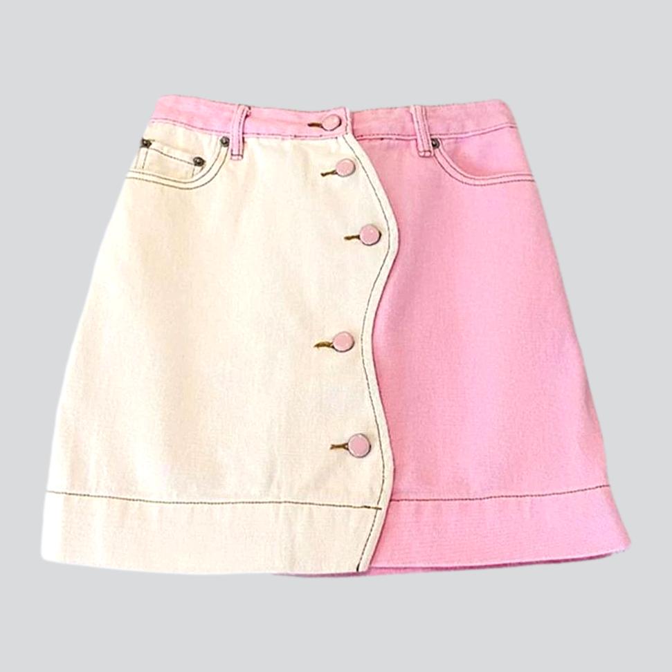 Two-tone patchwork pink denim skirt