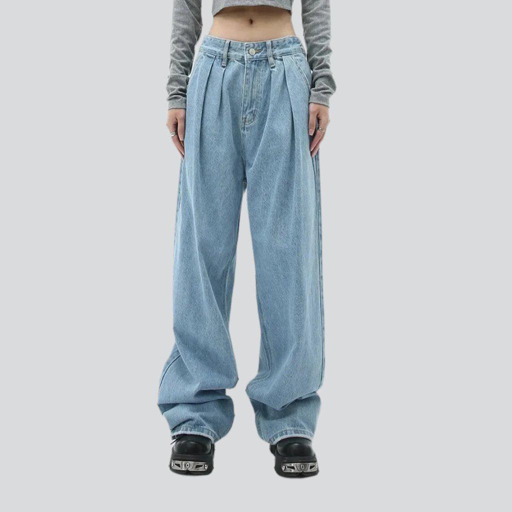 Introducing the 2023 Spring-Summer Collection of ultra baggy stonewashed jeans a ageless classic with a vogue twist! Crafted with exquisite attention to detail. these high-waisted jeans feature a zipper and button closure for a comfortable form and fashionable trend.