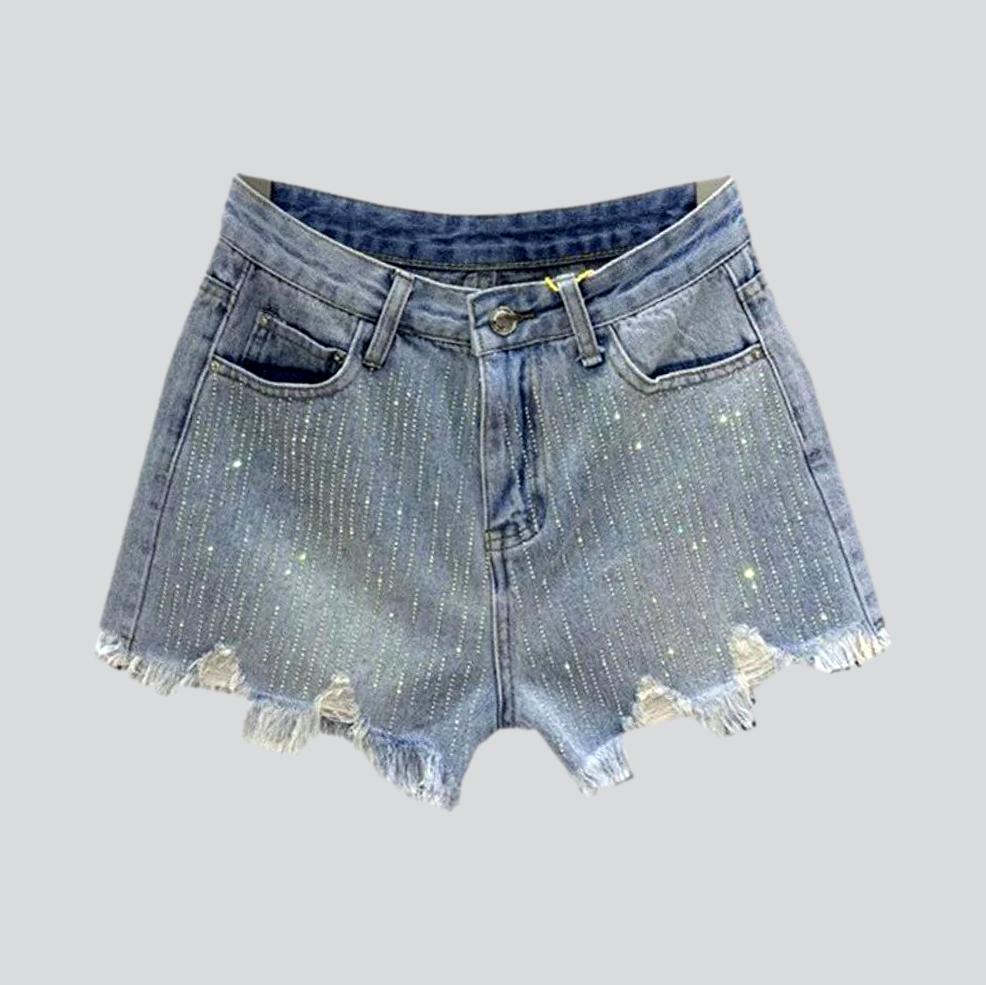 Flaunt your unique trend this summer with our 2023 Summer Collection's Y2K-inspired Vertical Rhinestone Stripes Denim Shorts—rich in retro allure and crafted with today's trendy-forward sensibilities!