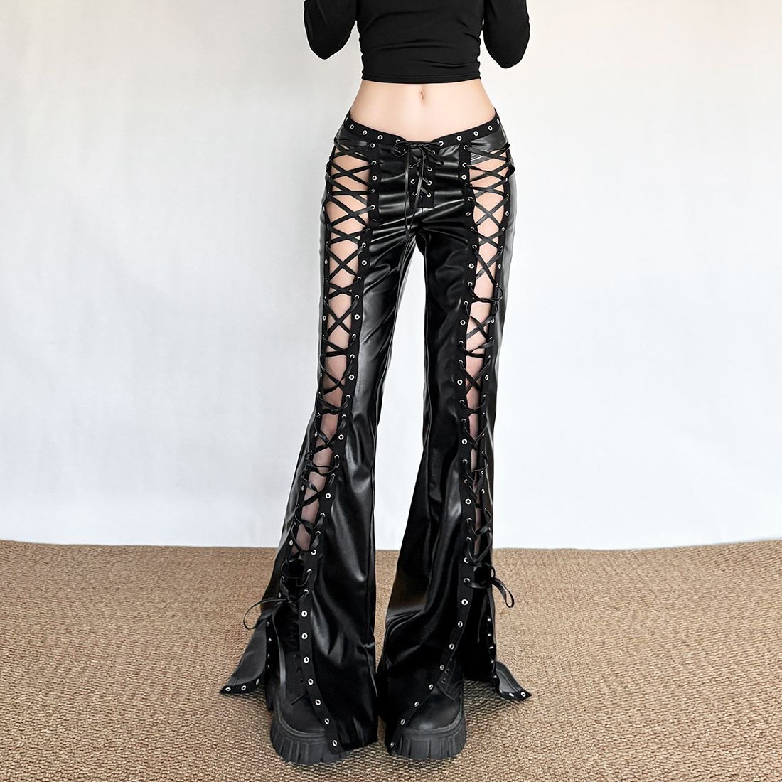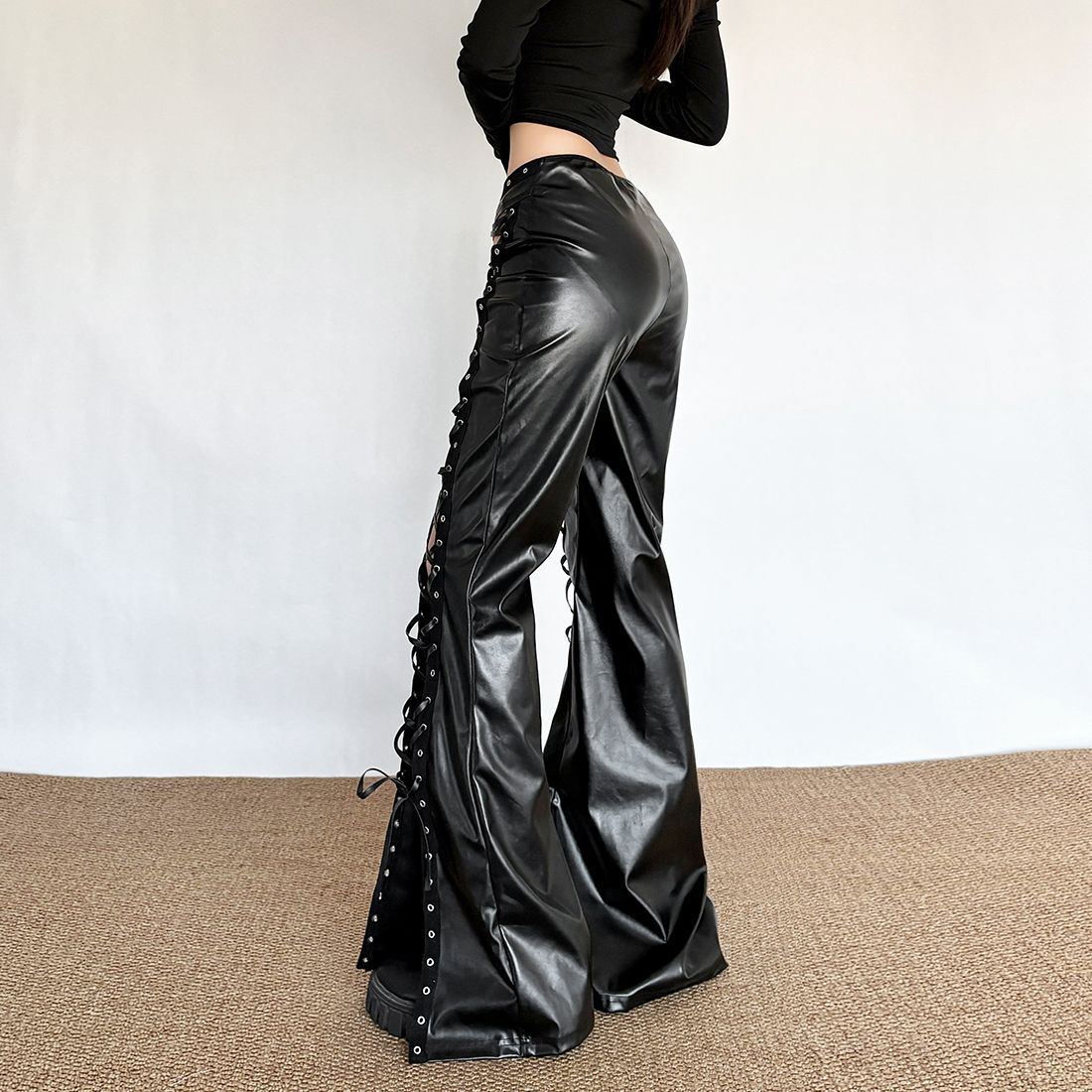 Lace Up Accents: The lace-up detailing adds a touch of rebellion to these PU leather pants. creating a unique and eye-catching design. The laces provide both a stylish focal point and a customizable element to your look.