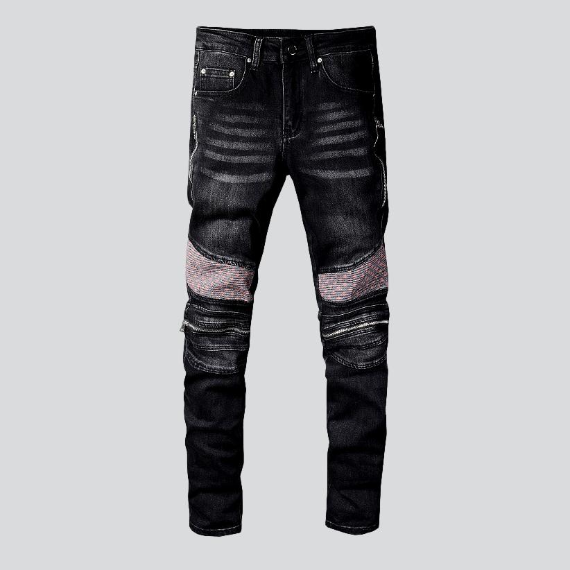 Bringing a conventional look to the 2023 Autumn Collection. our Vintage Wash Men's Moto Jeans are the perfect combination of conventional style and vogue-day comfort. Perfect for any occasion. these riding style jeans are crafted with patchwork detailing. a skinny fit. and a mid-waist design. Plus. with zipper and button closure and a hint of stretch. they're sure to keep you feeling relaxed and looking stylish all day long!