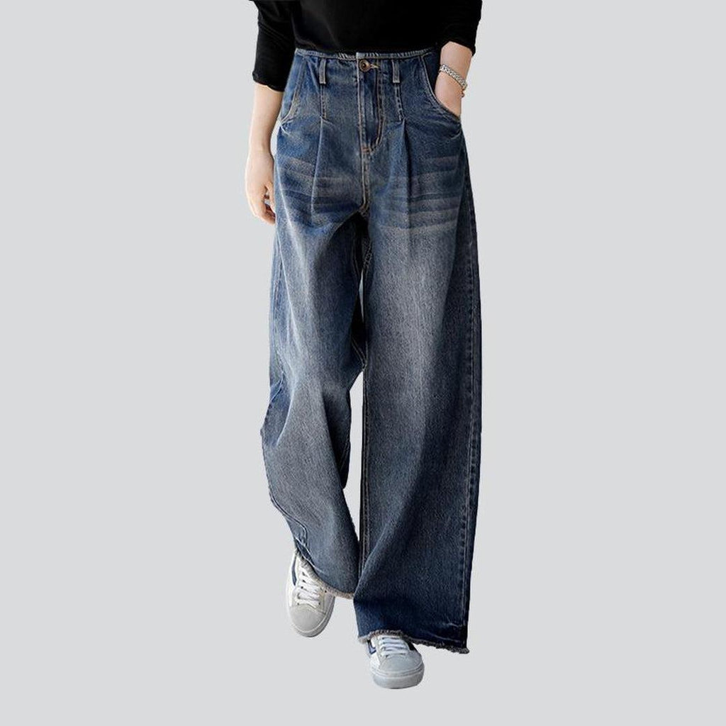 • Vintage Appeal: Enjoy the timeless sophistication of vintage-inspired mode with these high-waisted wide-leg jeans.