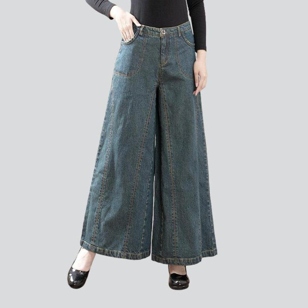For the bold and daring vogue lovers. our 2023 Autumn Collection presents vintage city-vibe culottes jeans with a tall-waist. zipper & button closure. Feel the warmth of summer. and the timelessness of aged fashion with these unique and stylish jeans.