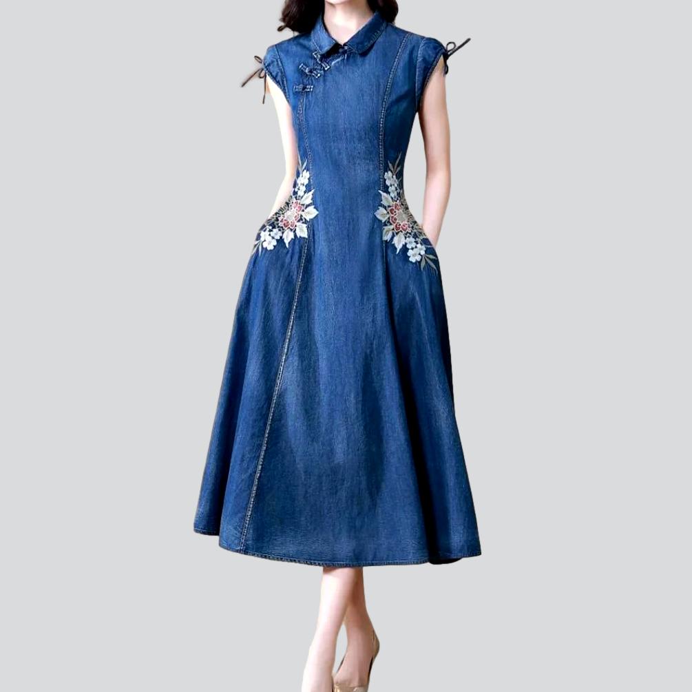 Introducing our 2023 Spring-Summer Collection's Street-Trend rise embroidery denim dress ââ‚?a bold statement of relief and sophistication!