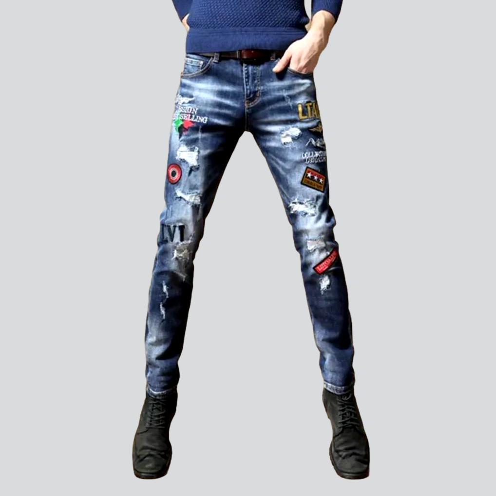 Master the street flair game with our 2023 Spring-Summer Collection Whiskered Embroidery Men's Jeans! Combining contemporary fashion with a nostalgic grunge vibe. these jeans are patterned to make a statement. Crafted with premium quality denim. featuring a sleek slim fit. mid-waist. zipper & button duo closure. and a distinctive distressed pattern. they are the perfect blend of comfort. functionality. and mode.