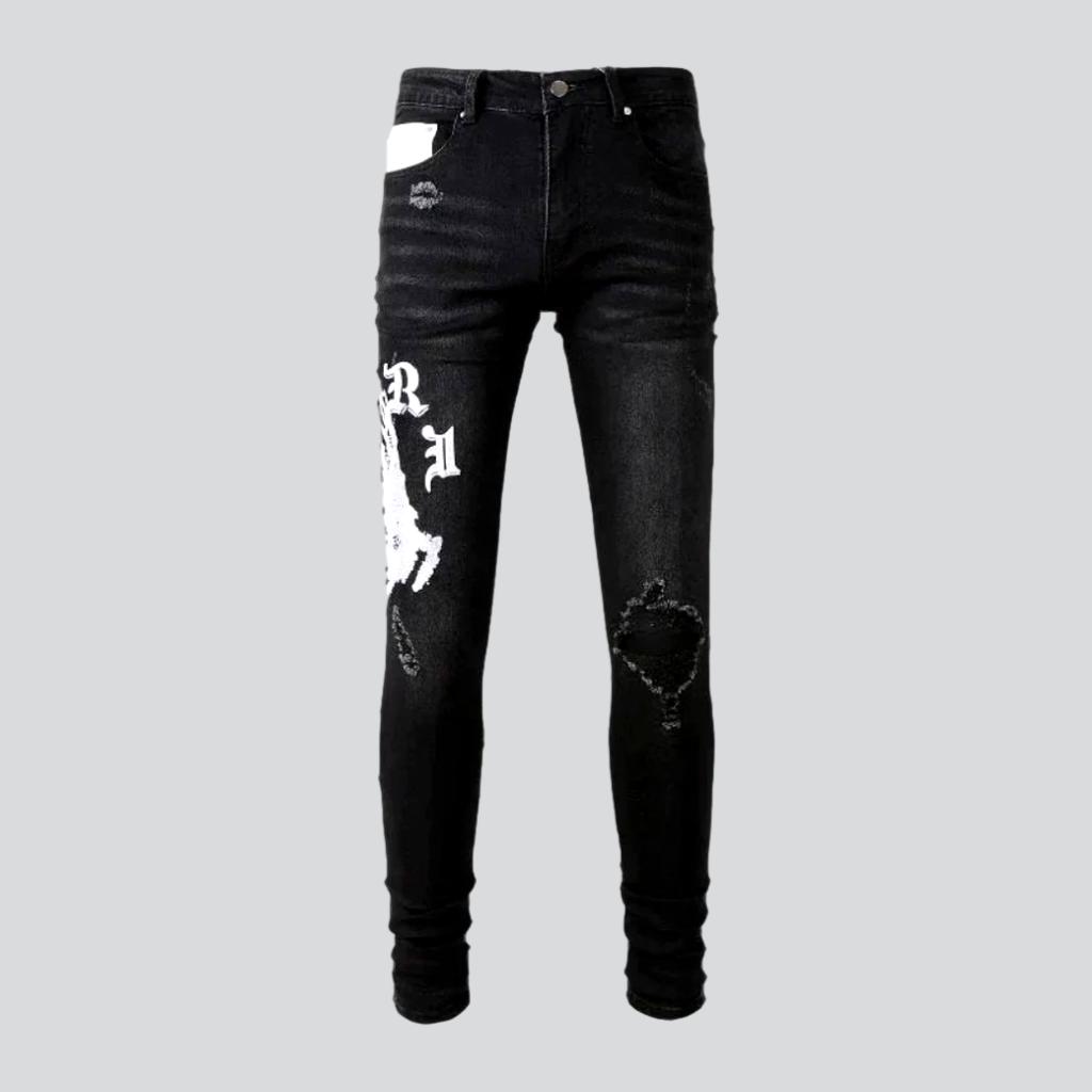 Introducing our 2023 Spring-Summer Collection's street style. the perfect pick for the modern fashionista white embroidery black skinny jeans! Meticulously crafted to be a timeless masterpiece. it promises to add a vibrant edge to your look.